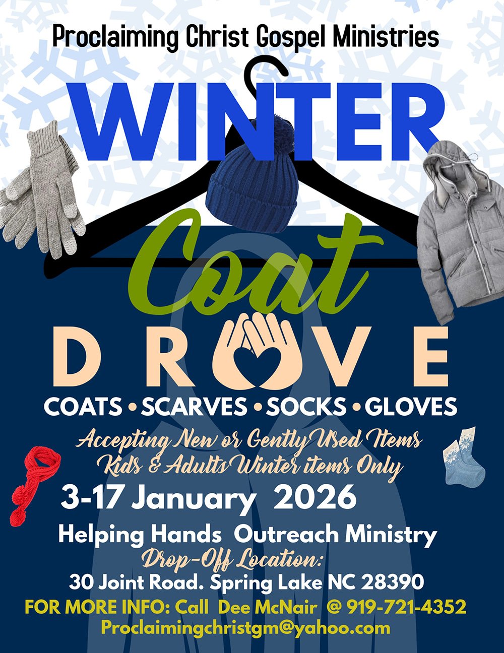 Proclaiming Christ Gospel Ministries is hosting a Winter Coat Drive to support children and adults in need this winter through Helping Hands Outreach Ministry.